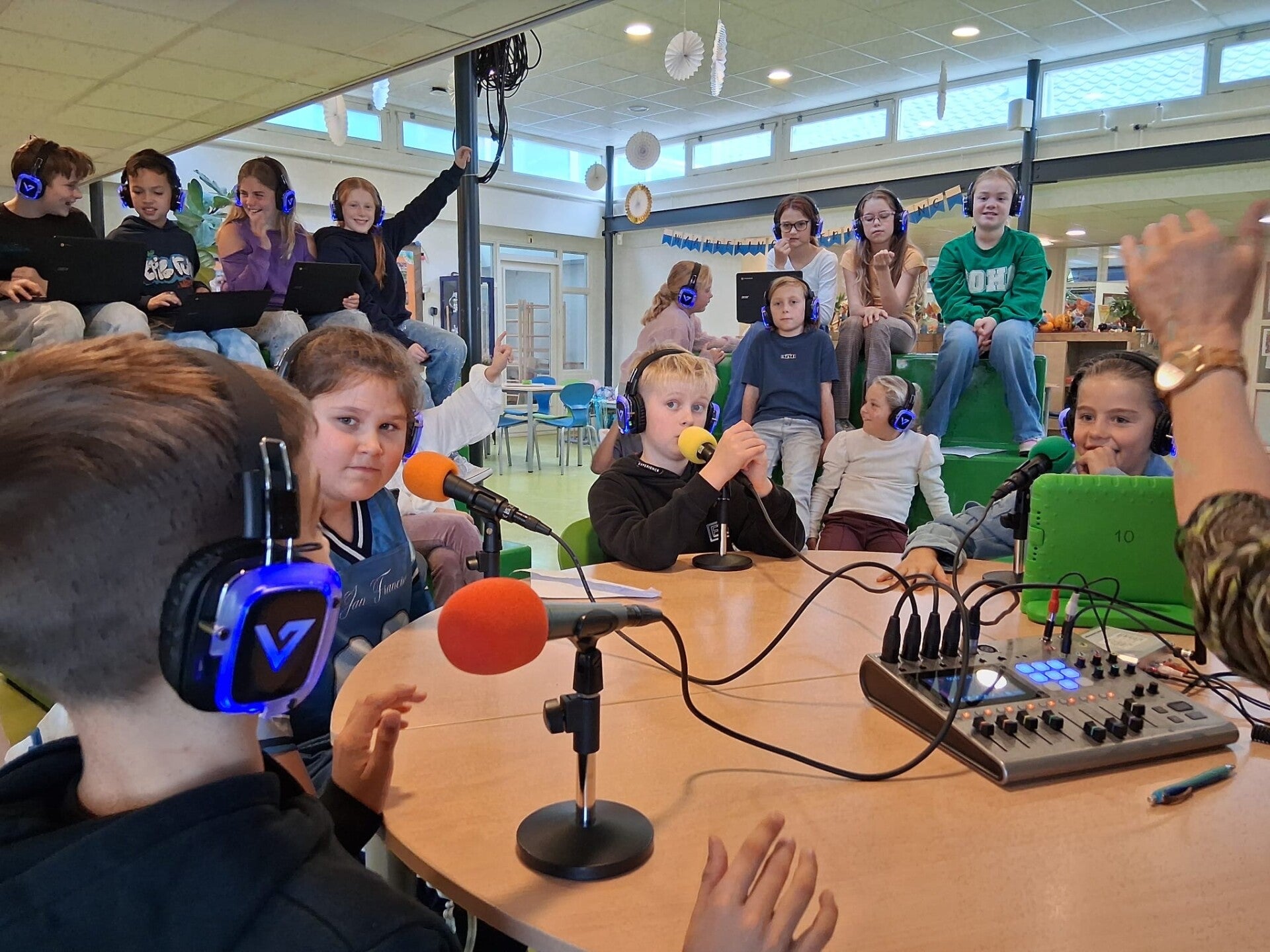 Een podcast opnemen is een leerzame en vooral leuke ervaring voor kinderen. Ze leren communiceren, presenteren en vooral luisteren naar elkaar. Bedenken samen onderwerpen voor hun podcast uitzending. Ook komt er een stukje techniek en mediawijsheid aan bod. Ze bereiden de uitzending voor door 'feitjes en weetjes' te verzamelen over hun onderwerp. Ook stellen ze elkaar vragen over het onderwerp, terwijl de hele klas meeluistert naar de uitzending.